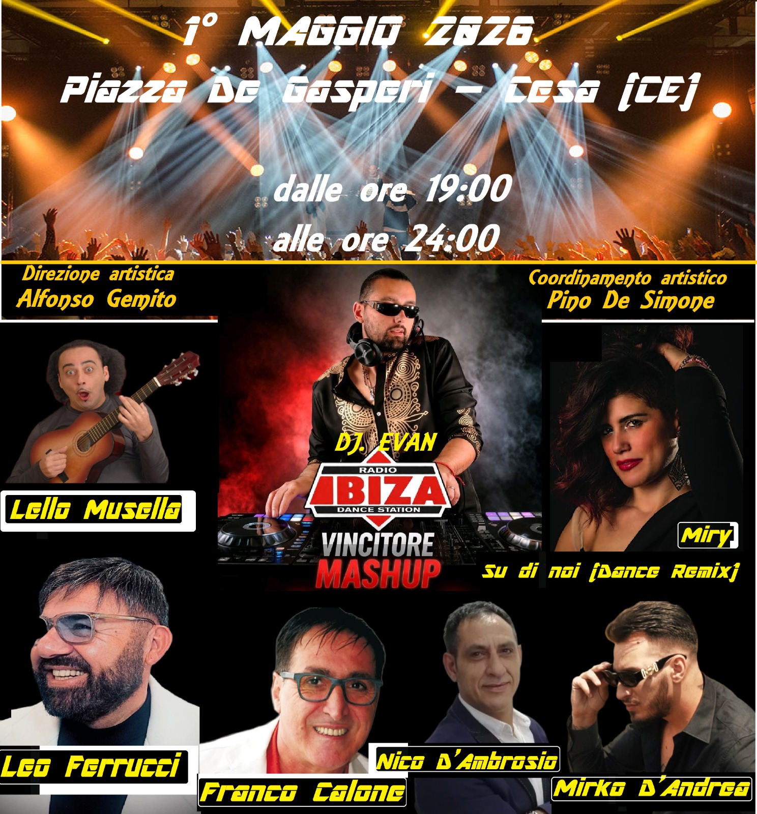 Il comune di Cesa si prepara a vivere una grande serata di musica e partecipazione per il 1° Maggio 2026, con un evento gratuito in Piazza De Gasperi che animerà la città dalle 19:00 alle 24:00.
