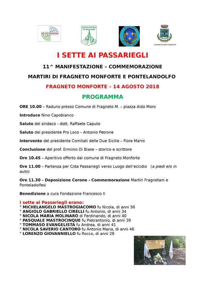 Sarà un rinnovare onore ai nostri Martiri, a quelli di Pontelandolfo, di Casalduni e ai 7 Passarieglie, così ricordati dagli amici di Fragneto Monforte.
