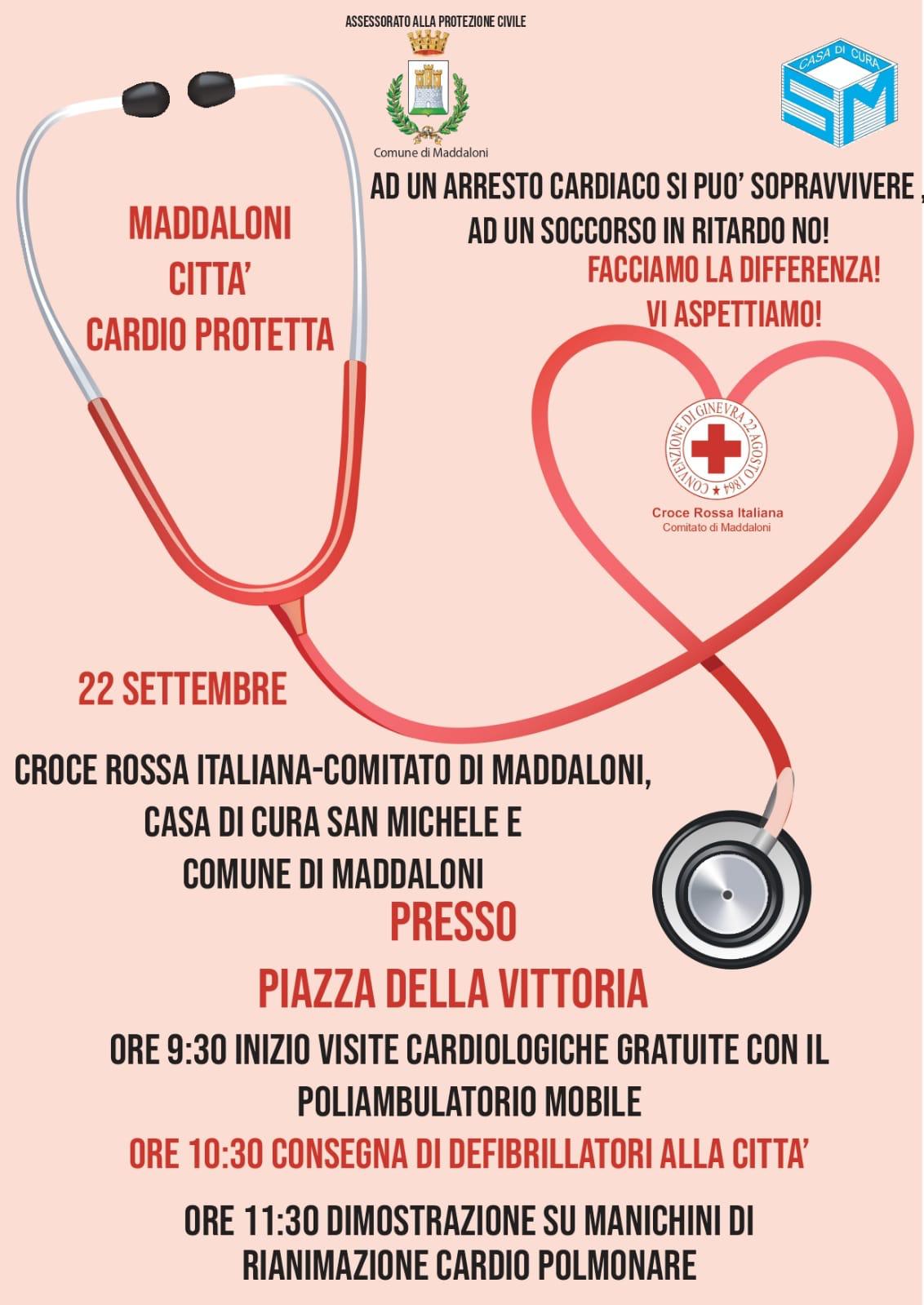 Domenica 22 Settembre dalle ore 09.00 in Piazza della Vittoria in Maddaloni si terrà la cerimonia ufficiale di consegna dei defibrillatori da parte del Comune e dell’ Amministrazione Comunale guidata dal Sindaco Andrea De Filippo. Parliamo del progetto “Maddaloni Cardioprotetta” promosso è seguito dall’ assessore alla Protezione Civile Luigi Bove. I defibrillatori sono stati donati dalla Casa di Cura San Michele al Comune di Maddaloni che ha deciso, in questa prima fase del progetto, di assegnare e donare un defibrillatore al Commissariato di Polizia di Stato, all’ Arma dei Carabinieri, alla Protezione Civile e alla Polizia Municipale . Tutto ciò anche grazie alla piena collaborazione della sezione di Maddaloni della Croce Rossa Italiana e il suo presidente dott. Marco De Simone. Il Sindaco Andrea De Filippo e il suo Vice Luigi Bove e l’intera Amministrazione consegneranno ufficialmente i defibrillatori di cui uno sarà collocato anche nella sede comunale di via San Francesco d’ Assisi . Nella stessa giornata di Domenica saranno effettuate anche delle visite gratuite cardiologiche grazie all’ intesa tra personale medico della Casa di Cura San Michele e la Croce Rossa Italiana, seguirà poi la cerimonia di consegna e poi alle 11, 30 ci sarà una dimostrazione di rianimazione su manichini. Saranno presenti anche il dottore Mannella coordinatore del 118 e il dott. Claudio Briganti della medicina dello sport . Naturalmente preziosa e determinante è la sensibilità mostrata dai vertici della Casa di Cura San Michele e dalla dottoressa Lidia BARLETTA in modo particolare .