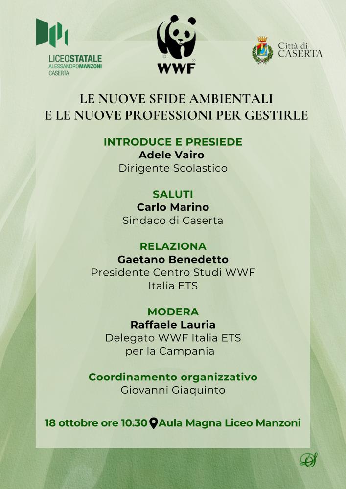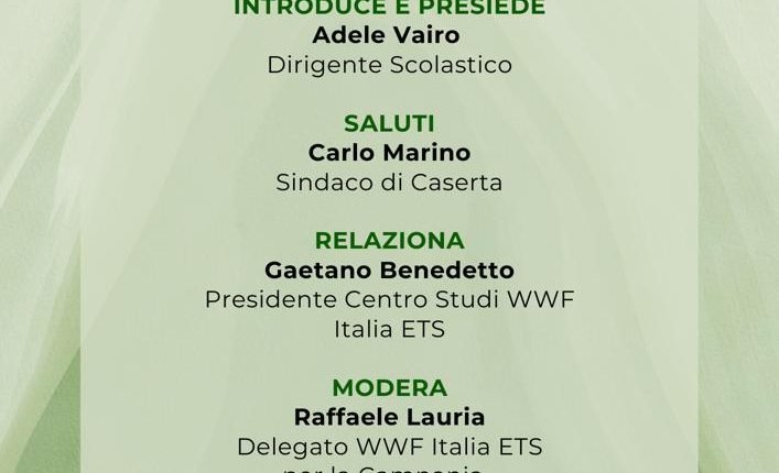 Ad aprire e presiedere i lavori la   . Seguiranno i saluti istituzionali del Sindaco della Città di Caserta,   .  Modererà la discussione , Delegato WWF Italia ETS per la Campania. Il coordinamento organizzativo è stato curato da   , docente del Liceo Manzoni e Direttore del Dipartimento di Scienze naturali.