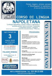 L’interesse, non solo dei cittadini di Napoli e della provincia ma anche di tanti stranieri per la LINGUA NAPOLETANA, diviene sempre più crescente grazie all’azione di salvaguardia, tutela e propaganda che da anni sta mettendo in atto Davide Brandi (vincitore del Premio Due Sicilie 2018 proprio per il costante impegno nella divulgazione del napoletano), vice presidente (per la lingua napoletana) dell’Associazione Internazionale Alliance Europenne des Langues Regionales (che tutela le minoranze linguistiche in Europa) nonché presidente dell’Associazione di Promozione Sociale I LAZZARI oltre ad esser autore e collaboratore per alcuni media quale Radio Marte, alcune riviste ed alcune associazioni ed aziende interessate a divulgare anche in lingua napoletana.