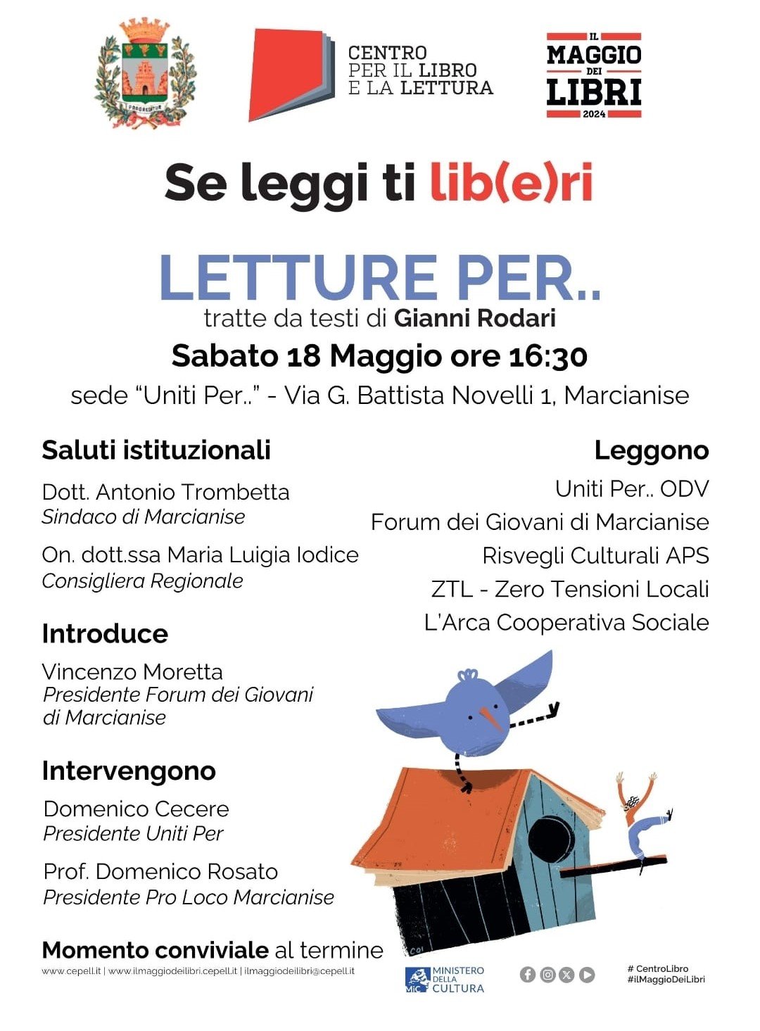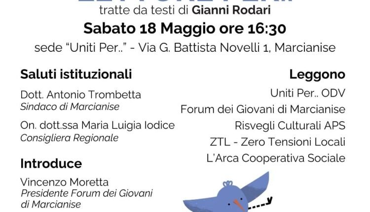 Ad introdurre i lavori sarà il presidente del Forum dei Giovani, Vincenzo Moretta, seguiranno gli interventi di Domenico Cecere, presidente dell’associazione Uniti Per e di Domenico Rosato, presidente della Pro Loco Marcianise. Nel corso dell’evento saranno eseguite delle letture di passi tratti da alcuni libri di Gianni Rodari dai rappresentanti delle diverse associazioni che hanno promosso l’iniziativa.