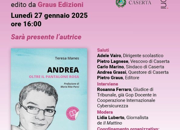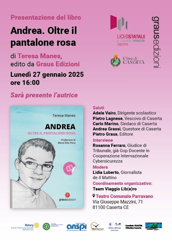 Andrea. Oltre il pantalone rosa.Presentazione del libro al teatro Parravano di Caserta. Gli studenti del Liceo Manzoni incontrano Teresa Manes ,