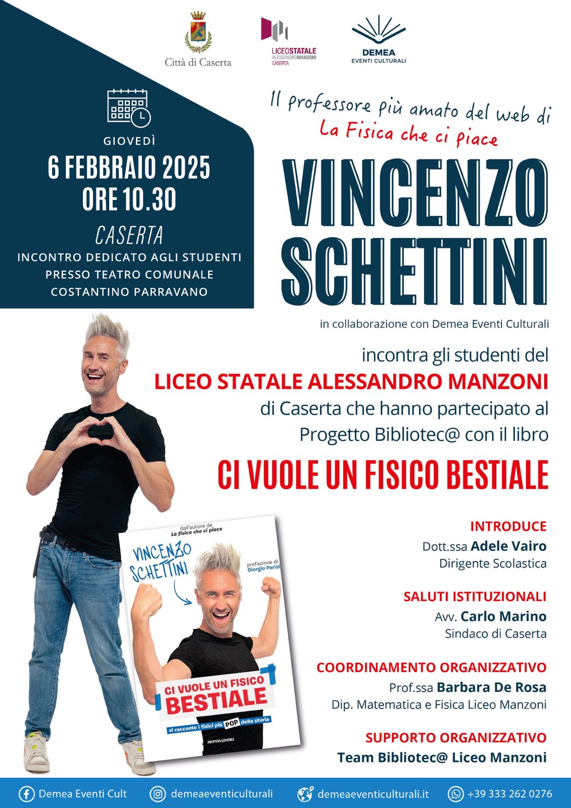 Pochissime tappe regionali, unica tappa casertana- che gode del ’ – una lezione-show riservata agli allievi del . che potranno godere del suo carisma e delle sue spiegazioni istrioniche sulle innovazioni didattiche della matematica e della fisica.