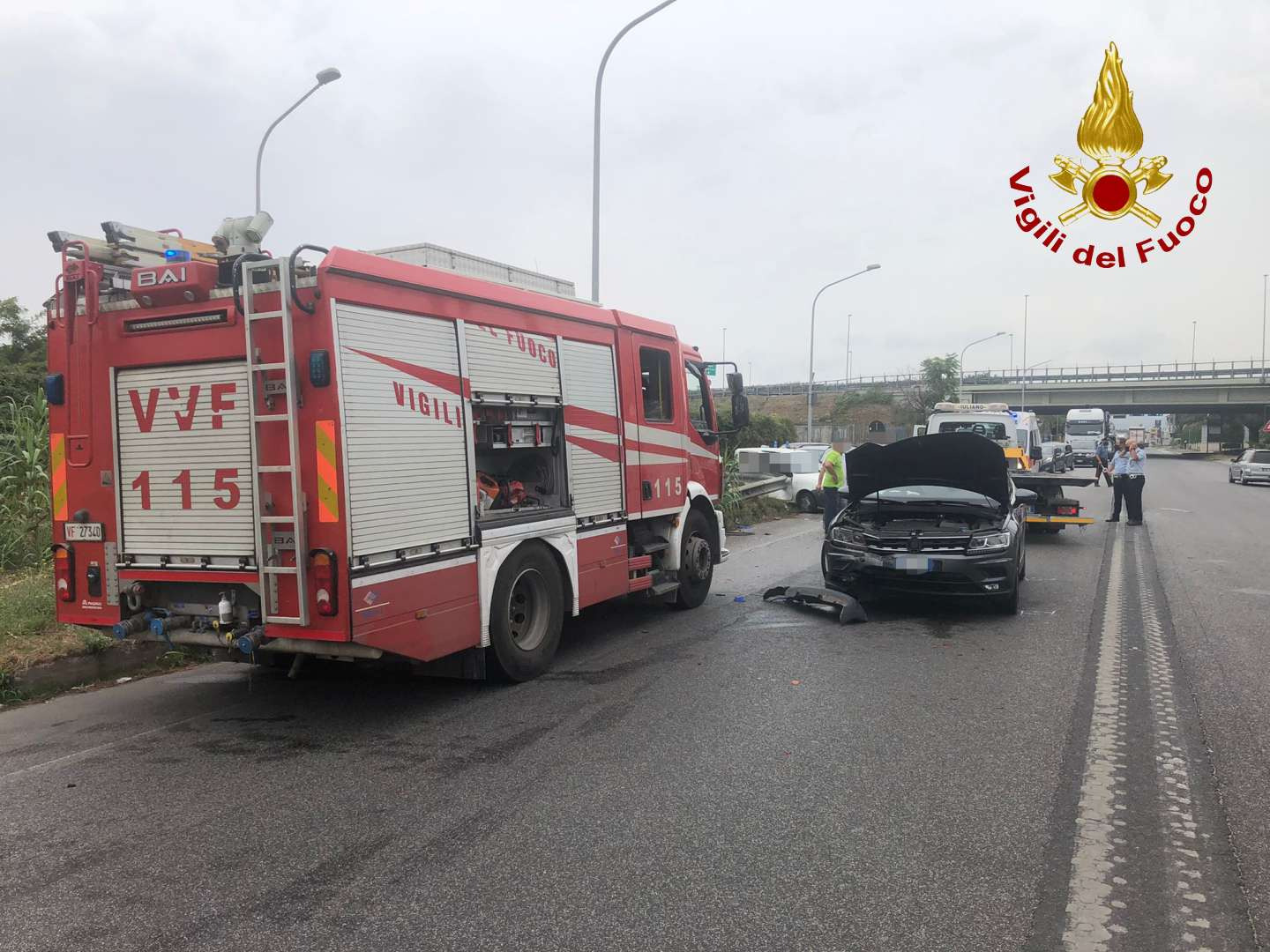Questa mattina verso le ore 11:30 una squadra dei Vigili del fuoco del Comando provinciale di Caserta e precisamente del Distaccamento di Marcianise è intervenuta in viale Carlo III nei pressi dello svincolo del comune di Marcianise per un’incidente stradale con due autovetture coinvolte. Giunti immediatamente sul posto i Vigili del Fuoco hanno provveduto a liberare tutti gli occupanti dalle due auto e a dare supporto al personale sanitario giunto sul posto con un’autoambulanza. Cinque i feriti, tra cui anche una donna incinta. Successivamente i Vigli del Fuoco hanno provveduto a mettere in sicurezza i veicoli per il loro recupero. Sono in corso gli accertamenti da parte della polizia locale per stabilire le cause dell’incidente.