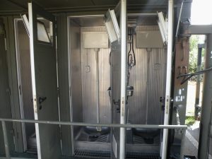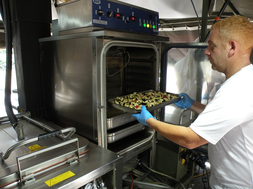 frigo shelterizzato bicella ISO1C, shelter panificio UEO2 (con sistema di sollevamento oleodinamico con centralina elettrica e comando a distanza) della capacità da 40 Kg all’ora (composto da forno elettrico, impastatrice, spezzatrice, formatrice, cella di lievitazione, banco da lavoro, mini frigorifero, bilancia di precisione).