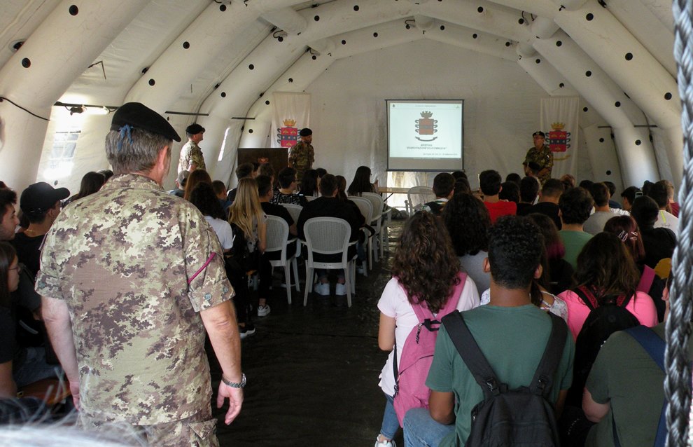 Infatti previ accordi intrapresi con il Comune e gli Istituti scolastici, sono state svolte nelle giornate del 23 e 24 settembre 2019 le attività di “Open Day” alle quali hanno partecipato complessivamente circa 700 studenti. Nel corso dell’Open Day per comprendere “Chi è un Soldato”, è stato proiettato agli studenti il video del diario dello Stato Maggiore Esercito “IoSonoUnSoldato”,