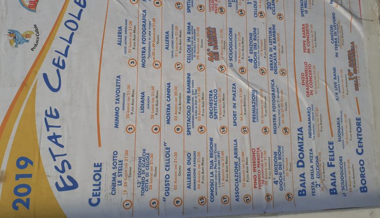 Cellole. L’estate cellolese è entrata nel pieno, pertanto ci sono una serie di eventi e di incontri in programma.