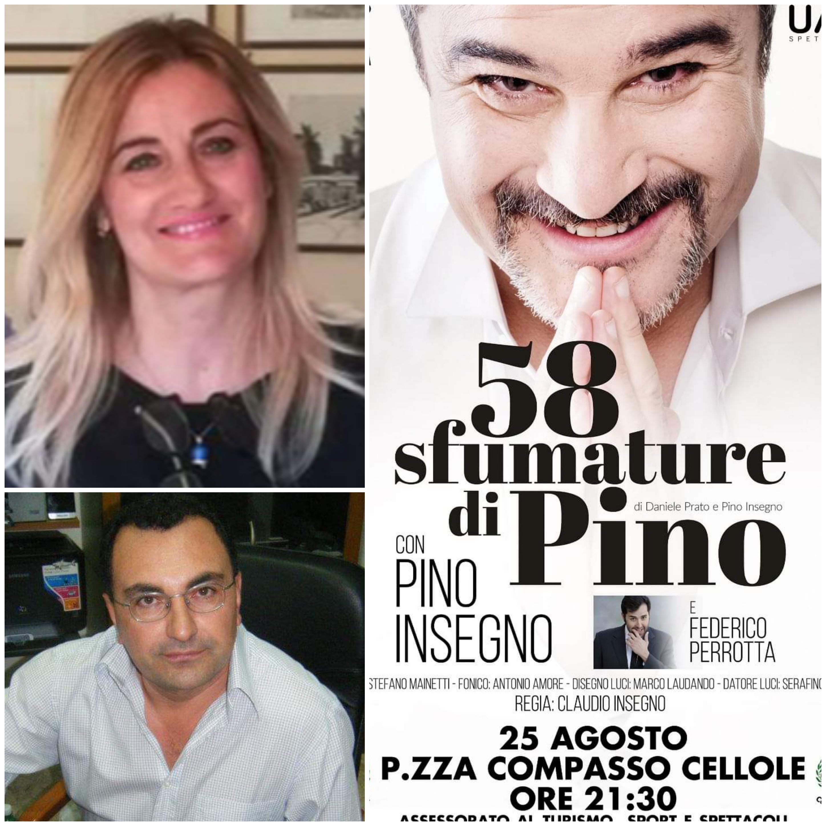 Un altro spettacolo di alto livello con uno straordinario artista, Pino Insegno, farà tappa questa sera nel comune di Cellole. L’estate cellolese continua in Piazza Compasso, nel centro cittadino, questa sera, domenica 25 agosto, alle ore 21.30.  Un grande artista che allieterà la serata sotto le stelle del comune rivierasco, con il compagno di avventure e attore straordinario Federico Perrotta, in un divertente spettacolo dal titolo “58 sfumature di Pino” con regia di Claudio Insegno. Uno spettacolo esilarante in cui si svela come la realtà si mischi spesso perfettamente alla finzione.