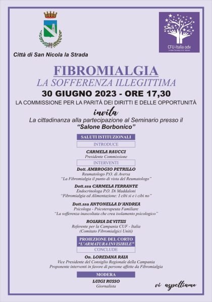 Il convegno è aperto a tutti coloro che vogliano informarsi, conoscere meglio questa sindrome e imparare a guardare con un’attenzione diversa le persone affette da fibromialgia.
