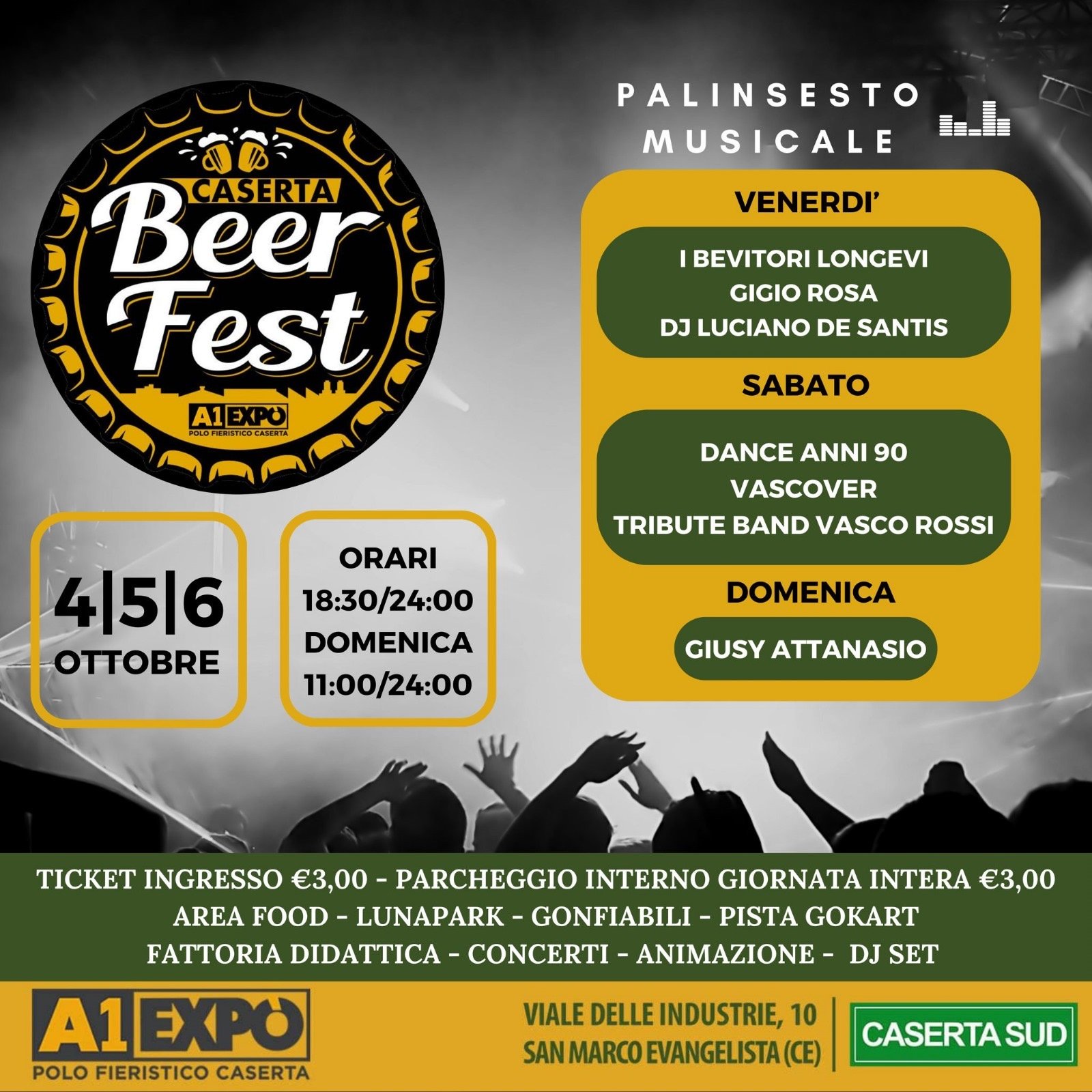 A tutta birra verso la conclusione degli eventi enogastronomici 2024 al Polo Fieristico A1Expò di Caserta Sud. Caserta Beer Fest, giunta alla seconda edizione, si terrà in Viale delle Industrie 10 da venerdì 4 a domenica 6 ottobre dalle 18:30 alle 24:00 mentre la domenica sarà full time, dalle 11:00 alle 24:00.