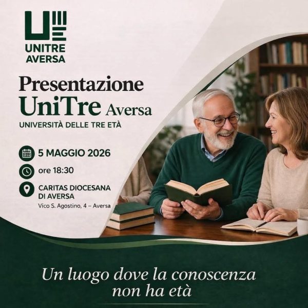AVERSA – La città normanna si prepara ad accogliere una nuova e preziosa realtà di aggregazione culturale e sociale. Il prossimo 5 maggio 2026, alle ore 18:30, si terrà l’evento di presentazione ufficiale dell’UniTre Aversa.