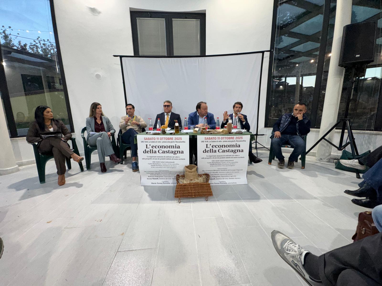A Roccamonfina, l’11 ottobre 2025 nell’ambito della rassegna ”Anteprima della Festa Nazionale del libro”, organizzata dalla Maestra Nicolina Moretta, si è avuto il secondo incontro di una serie, che si terranno tutti i sabati fino al 1° novembre p.v. Un inserto culturale dal titolo “L’economia della castagna” nella Caldera di Vetro, con Parco Giochi annesso e adiacente a Piazza Nicola Amore, in occasione della Maxi Sagra della Castagna IGP e del Fungo Porcino.