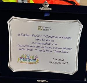 E per lui nella serata c’è stato il riconoscimento tangibile per il suo impegno sociale. Il sindaco Parisi e il campione europeo Nino La Rocca gli hanno consegnato una targa per il lavoro svolto dalla sua associazione nel supporto alle vittime di bullismo e di violenza sul territorio, in particolare nelle province di Caserta e Benevento.