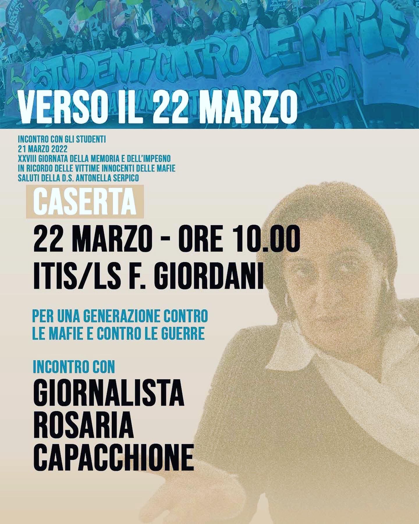 Nella mattinata di oggi, martedì 22 Marzo,si è tenuto l’evento dedicato alle vittime della Mafia, in aula magna presso il Giordani.