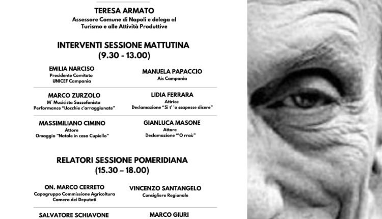Eduardo De Filippo nel 1979 dedicò una meravigliosa poesia ad Unicef; alla presenza della presidentessa del Comitato Regionale Unicef Emilia Narciso, circondata dai giovani volontari, riascolteremo la poesia “L’ultima speranza” A seguire, musicisti, attrici e attori del calibro di Marco Zurzolo, Lidia Ferrara, Massimiliano Cimino, Gianluca Masone. Fra le tante emozioni, ci sarà un momento sensoriale a cura di Papaccio Manuela AIS Campania, Toraldo ci spiega come si riconosce il profumo del caffè e non solo. Nel pomeriggio, un tavolo tecnico discuterà sull’ argomento ” DOP IGP economy meridionale fra osservazioni e proposte”