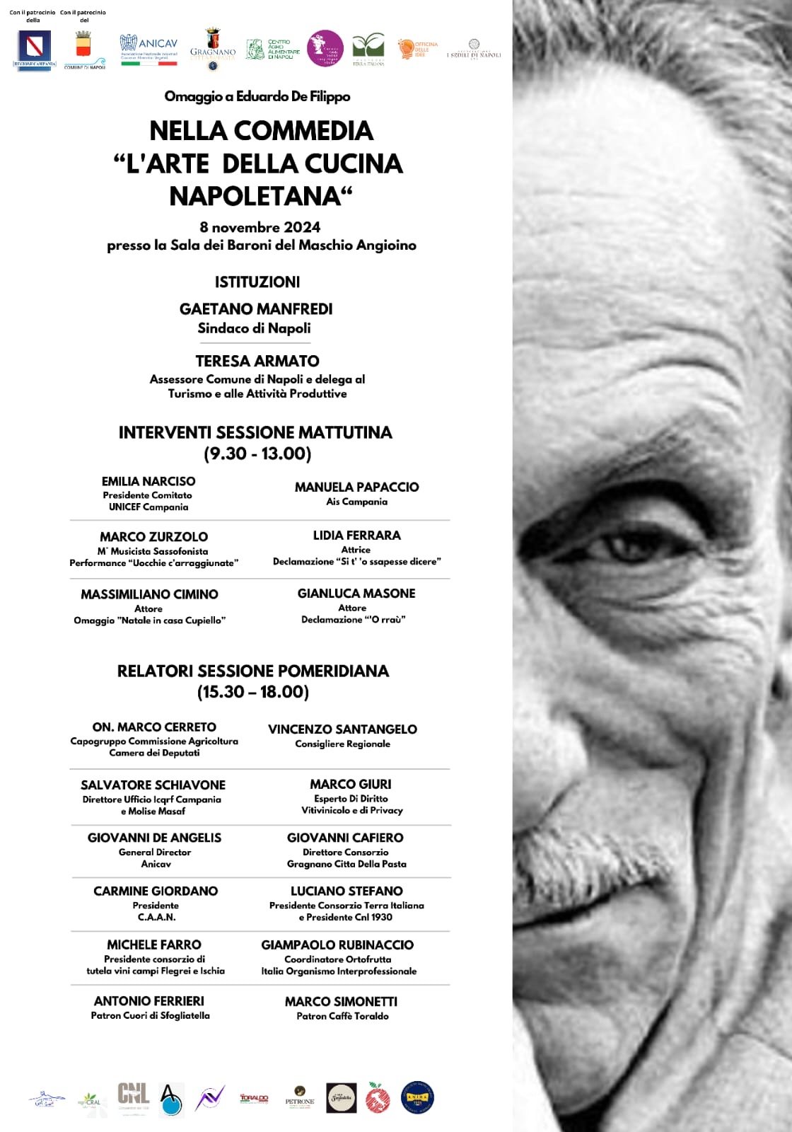 L’8 novembre, presso la prestigiosa Sala dei Baroni del Maschio Angioino di Napoli, le Associazioni “Officina delle Idee” di Rosa PRATICO’ e “I Sedili di Napoli ETS” di Giuseppe SERRONI, ricordano Il mito di Eduardo De Filippo a distanza di 40 anni dalla sua scomparsa.