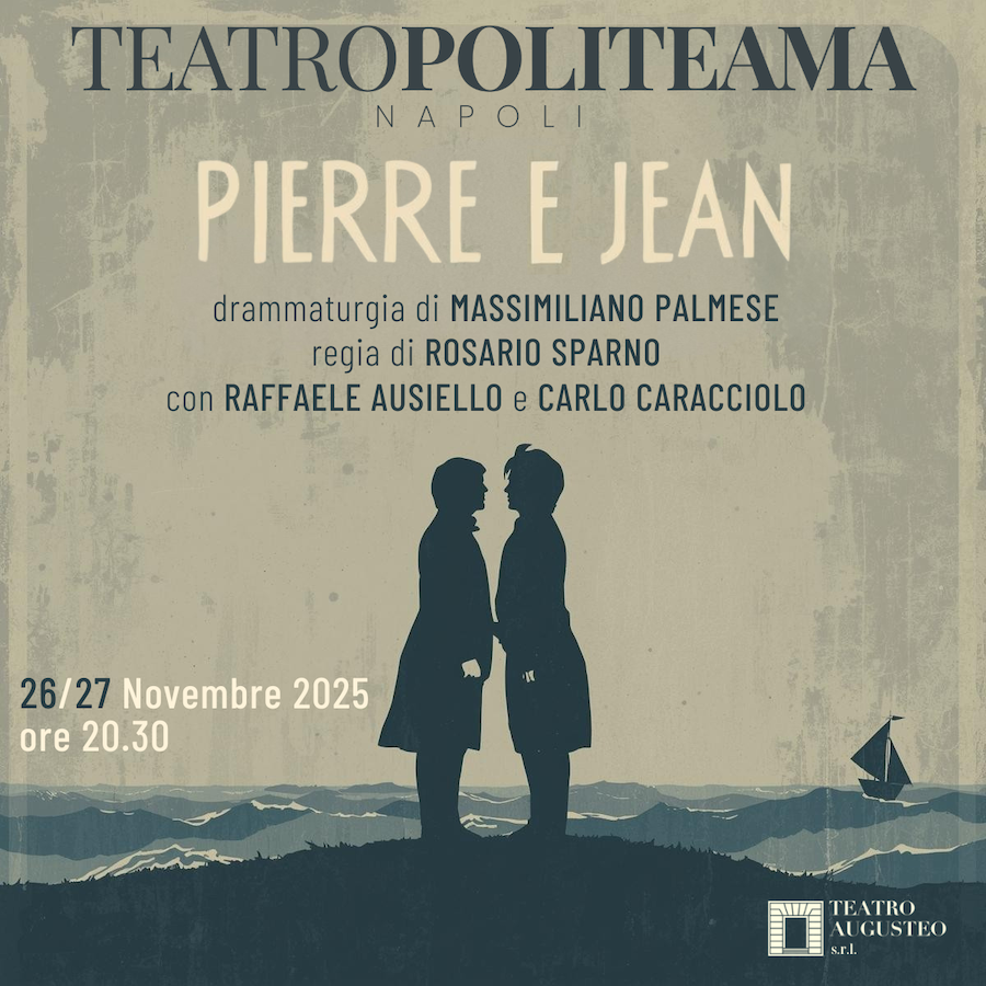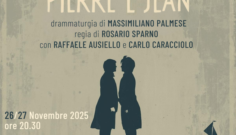 Mercoledì 26 e giovedì 27 novembre ore 20.30, al Politeama di Napoli, Via Monte di Dio 80, appuntamento con “Pierre e Jean”, dal romanzo di Guy de Maupassant, adattato da Massimiliano Palmese e diretto da Rosario Sparno. Protagonisti Raffaele Ausiello e Carlo Caracciolo.