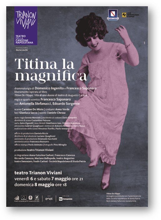 Con la nuova produzione teatrale “Titina la magnifica”, sulla figura di Titina De Filippo, il Trianon Viviani dà il via a “L’eredità Scarpetta”, la minirassegna che intende approfondire alcuni aspetti del lascito artistico e culturale della maggiore famiglia teatrale del Novecento.