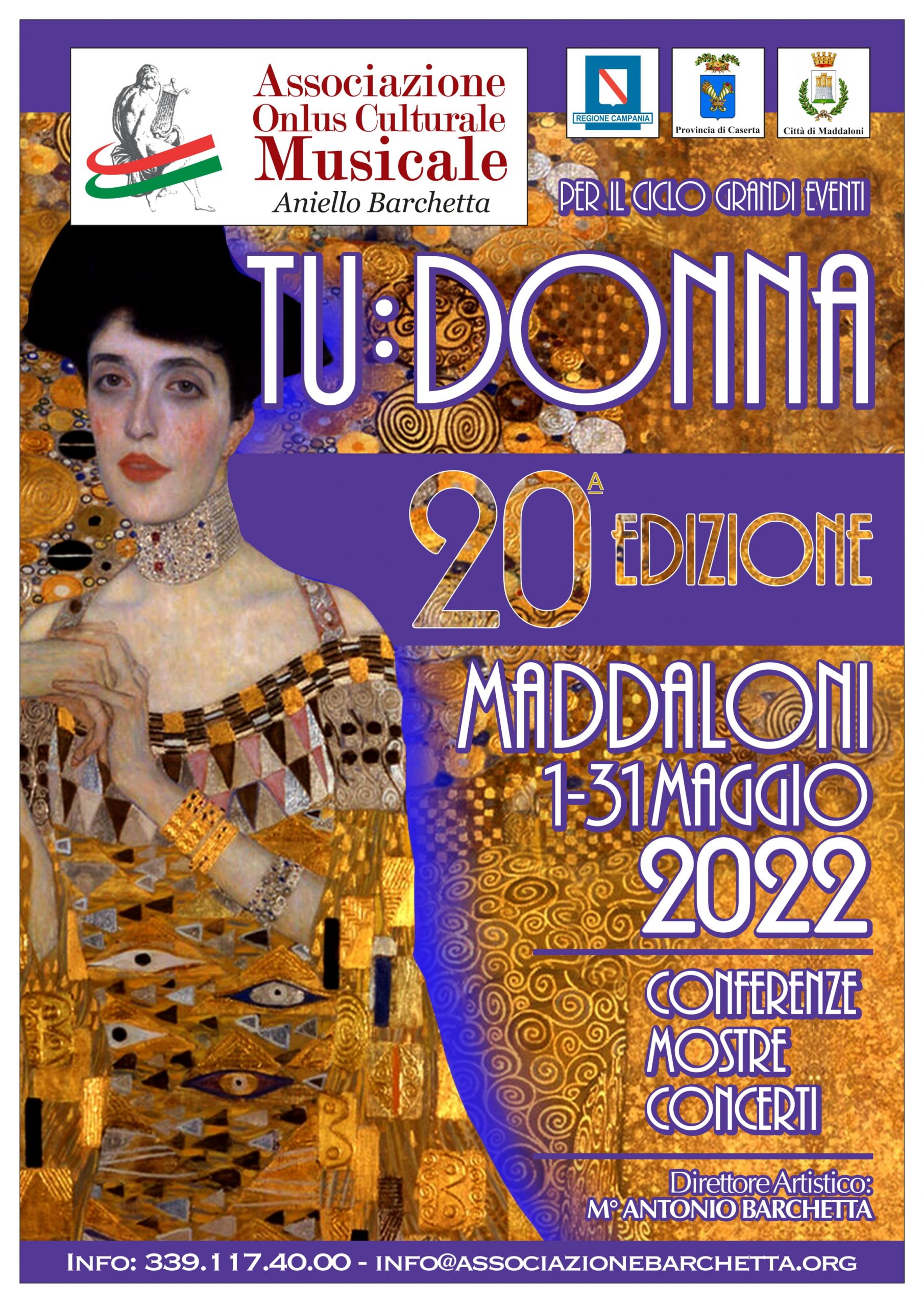 MADDALONI (Caserta) – Parte la programmazione del ciclo di eventi “Tu Donna” 20esima edizione dell’anno 2022 a cura dell’Associazione ONLUS Culturale Musicale “Aniello Barchetta” di Maddaloni. Il ciclo di Manifestazione gode del patrocinio della Regione Campania, dell’Amministrazione Provinciale di Caserta e del Comune di Maddaloni.