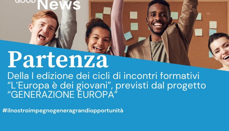 In data 3 dicembre 2021 partirà la I edizione dei cicli di incontri formativi “L’Europa è dei giovani”, previsti dal progetto “GENERAZIONE EUROPA”, co-finanziato dalla Presidenza del Consiglio dei ministri – Dipartimento per le politiche giovanili e il Servizio Civile Universale, nell’ambito del Piano di Azione e Coesione – Avviso “Giovani per il Sociale 2018”.