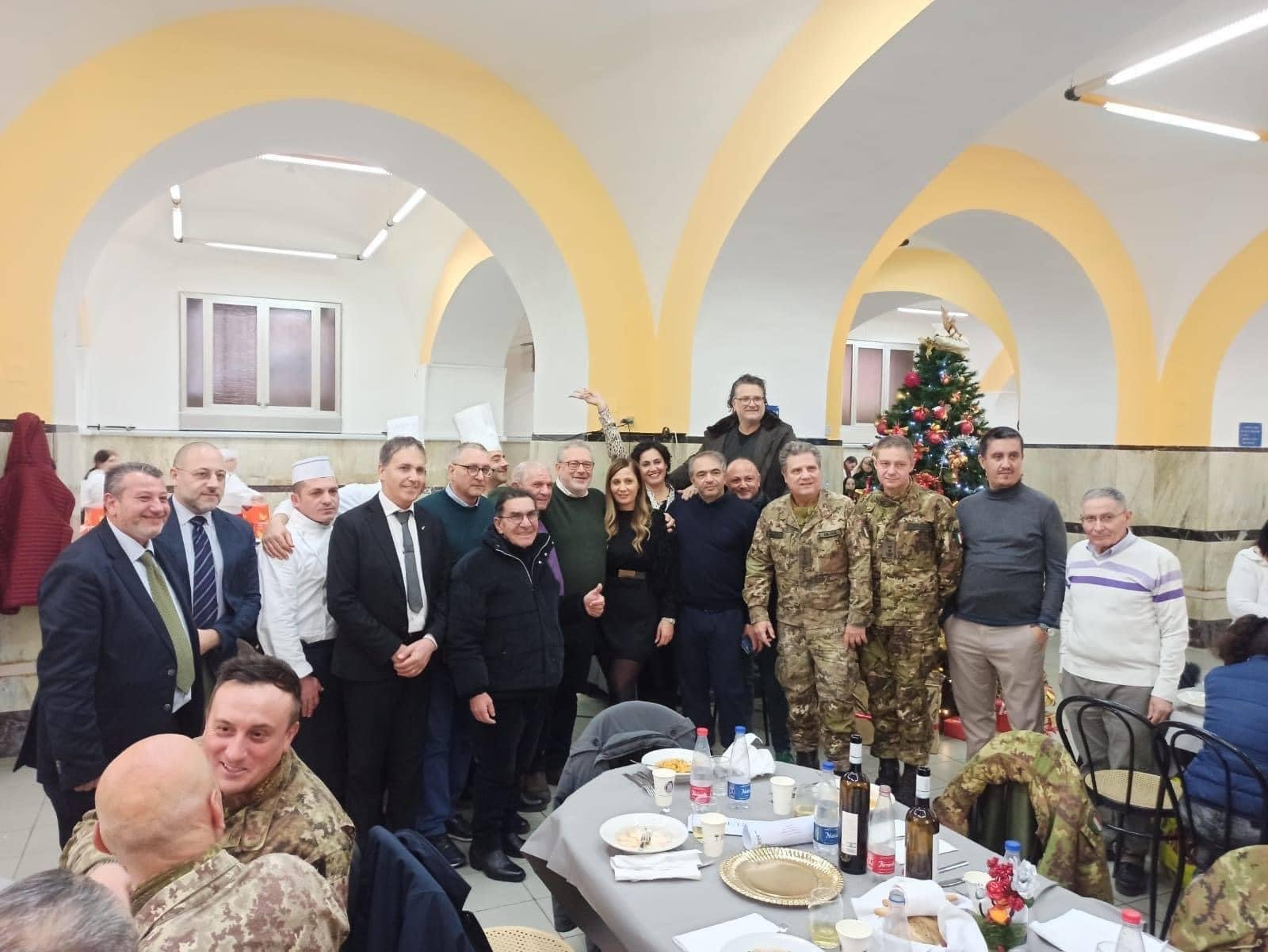 Si è tenuto oggi, nel Villaggio dei Ragazzi, il tradizionale “Pranzo Solidale di Natale”, destinato ai bisognosi del territorio. L’iniziativa è del Comune di Maddaloni, a cui hanno collaborato la Scuola di Commissariato dell’Esercito di Maddaloni, comandata dal Brig. Gen. Leonardo Colavero, la Caritas Diocesana, la Scuola di Formazione Gastronomica “Dolce e Salato” dello Chef stellato Giuseppe Daddio e del Maestro Pasticcere Aniello Di Caprio, e lo stesso Villaggio dei Ragazzi. Il pranzo, preparato dalla Scuola di Commissariato, in collaborazione con la Scuola di formazione “Dolce e Salato”, è stato distribuito a tutti i disagiati che vi hanno partecipato, accompagnati, per l’occasione, dai volontari all’ingresso dell’Ente calatino, ove sono state servite svariate pietanze. Sono intervenuti, tra gli altri, l’on. Vincenzo Santangelo, consigliere regionale della Campania, il Sindaco di Maddaloni, Andrea De Filippo, il Commissario Straordinario della Fondazione, avv. Antonio Caradonna, il colonnello Claudio Milone della Scuola di Commissariato dell’Esercito di Maddaloni e diversi esponenti del mondo politico, ecclesiastico, militare e del Terzo settore. In particolare, la Scuola di Commissariato, Ente dipendente dal Comando Logistico dell’Esercito per il tramite del Comando di Commissariato, è un polo nazionale orientato ad una dimensione interforze e interagenzia e deputato alla formazione, qualificazione, specializzazione e aggiornamento del personale del Commissariato con corsi attinenti sia alla funzione logistica. “È questa un’iniziativa – ha commentato il Commissario Caradonna – che rafforza il nostro impegno nell’aiutare e sostenere i fratelli più bisognosi e che mette ulteriormente in evidenza la vocazione del Villaggio, che anche quella di fare rete con le strutture del territorio sostenitrici di importanti progettualità solidali. In questo contesto, voglio ringraziare il Comune di Maddaloni per la significativa iniziativa, la Caritas e la Scuola di Commissariato dell’Esercito, che costituisce un’eccellenza nazionale nel settore logistico ed in particolare del vettovagliamento, per il concreto supporto fornito. Infine, indirizzo un sentito ringraziamento alla Scuola di formazione “Dolce e Salato” che rappresenta un punto di riferimento per i tanti giovani che intraprendono l’importante percorso formativo nel settore enogastronomico”. “Il Comune di Maddaloni – ha puntualizzato il Sindaco De Filippo – è sempre in prima linea nel promuovere e sostenere iniziative di solidarietà per i cittadini in difficoltà. Quest’anno, per la prima volta nel Villaggio dei Ragazzi, grazie anche alla collaborazione di altre realtà attive sul territorio, quali la Caritas, l’esercito e la Scuola “Dolce e Salato”, siamo riusciti a realizzare questo momento di condivisione e di incontro nel segno della solidarietà; e quale miglior momento se non questo che precede il Natale, la festa che celebra la famiglia, gli affetti, l’inclusione”.
