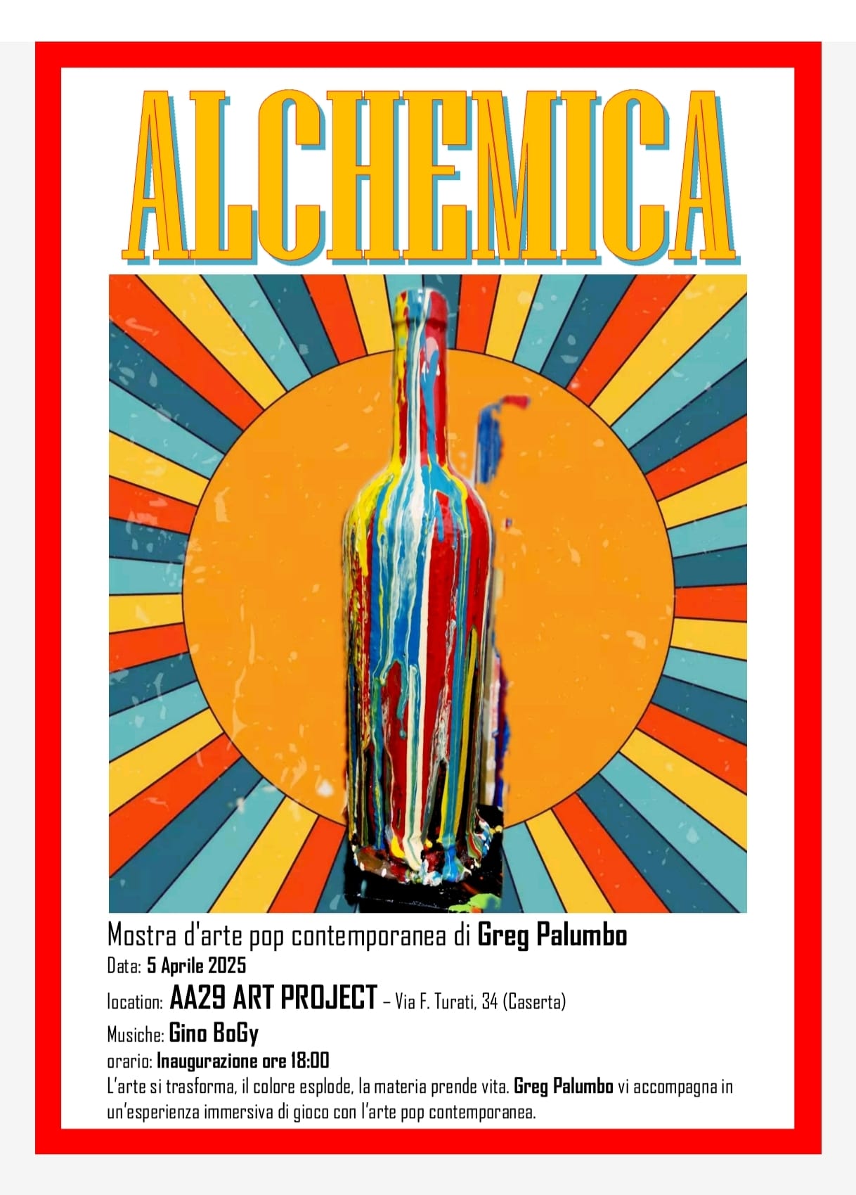 CASERTA – Con “Alchemica” l’artista Greg Palumbo presenta a Caserta la sua prima personale presso la galleria AA29 Art Project Room (in via Filippo Turati n.34) il cui vernissage vi sarà sabato 5 aprile alle ore 18.00.