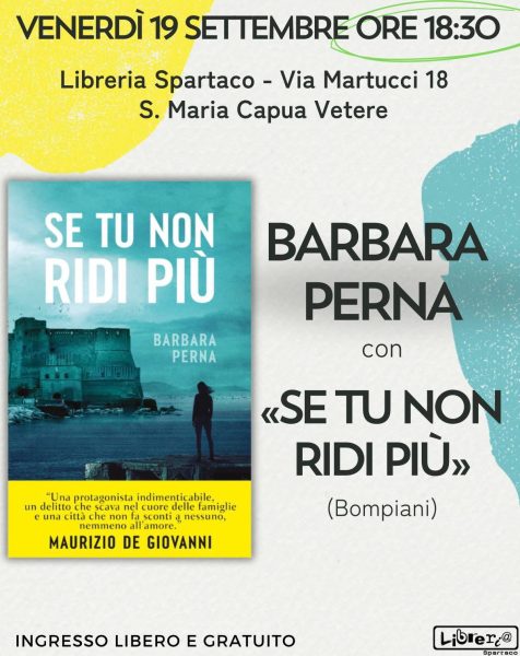 Un nuovo appuntamento culturale attende i lettori di Santa Maria Capua Vetere. Venerdì 19 settembre alle ore 18:30, presso la Libreria Spartaco (via Martucci 18), sarà ospite la scrittrice Barbara Perna, che presenterà il suo ultimo romanzo Se tu non ridi più, edito da Bompiani.