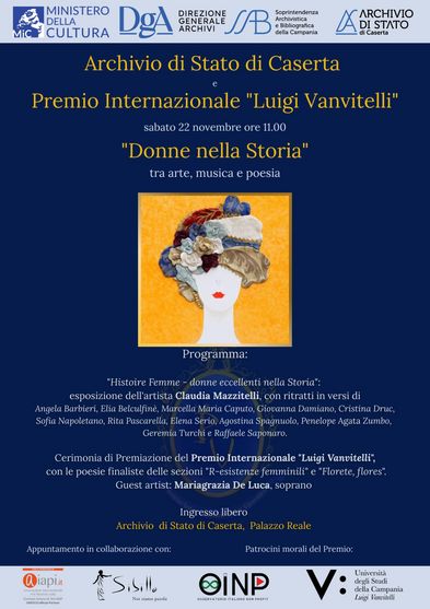 Caserta – Sabato 22 novembre, a partire dalle ore 11.00, l’Archivio di Stato di Caserta ospiterà la giornata tematica “Donne nella Storia”, parte integrante della rassegna “La poesia nella Città del Re”. L’iniziativa nasce dalla collaborazione tra l’Archivio e il Premio Internazionale “Luigi Vanvitelli”, fondato dai poeti Maria Pia Dell’Omo e Antonio Dentice d’Accadìa in memoria dell’intellettuale Angelo Calabrese. Giunto alla sua seconda edizione, il Premio ha raccolto 1200 componimenti da 31 Paesi, con una significativa partecipazione di autori ispanoamericani e della rete consolare presente alle cerimonie.