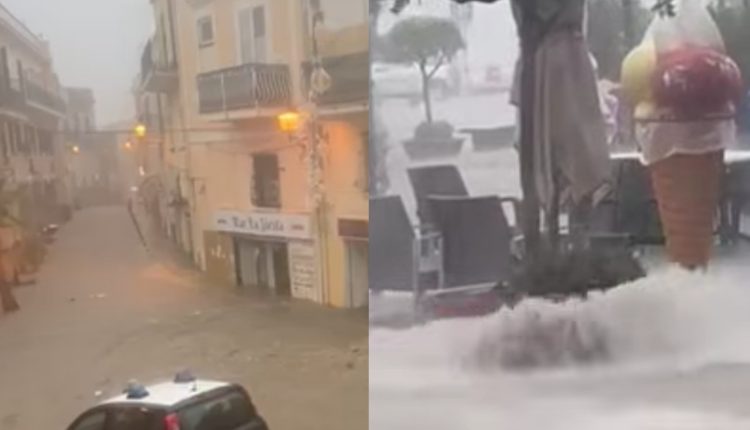Bombe d’acqua intense anche ad Ischia, dove si registrano danni ancor più gravi: strade allagate, scuole evacuate e chiuse