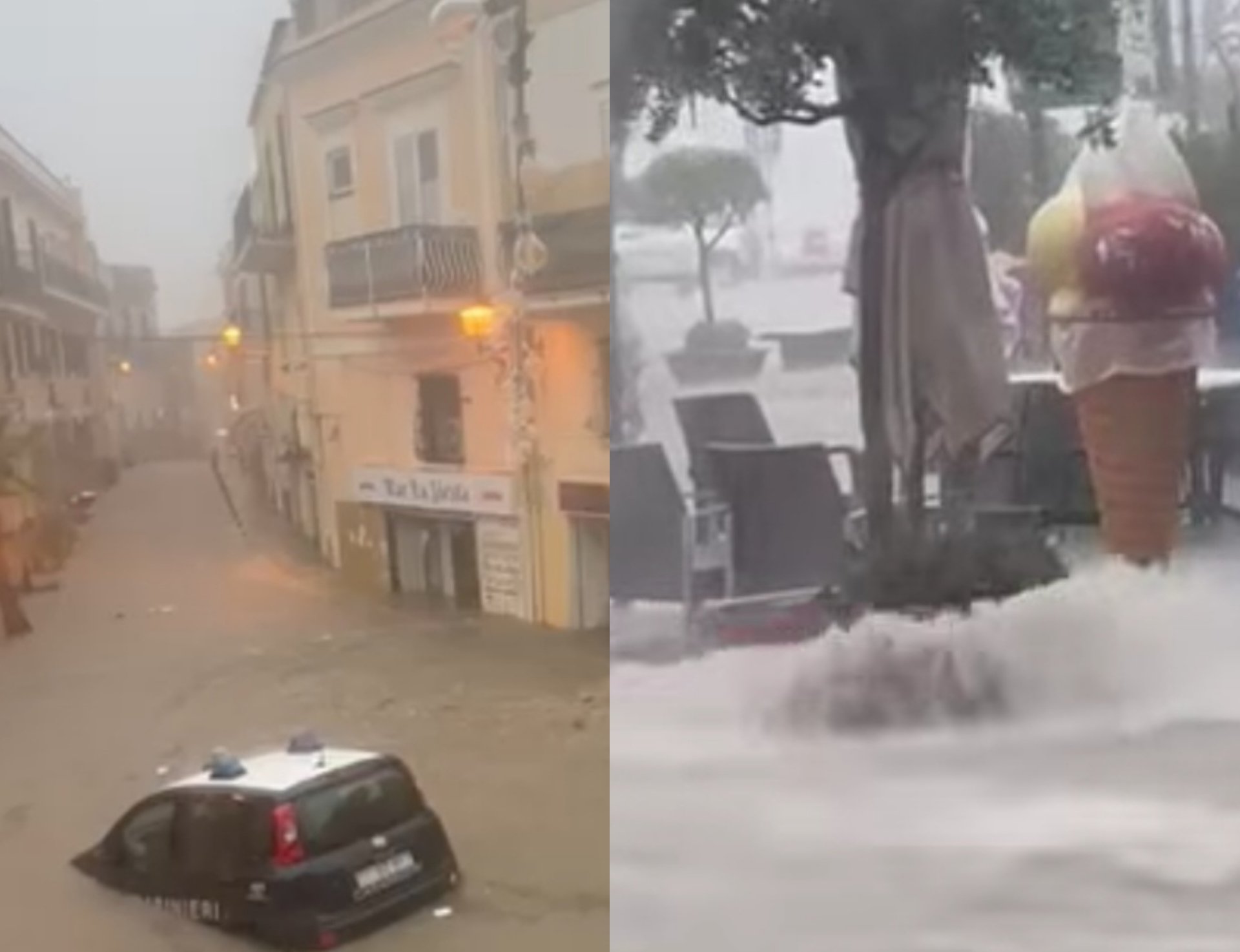 Un violento nubifragio ha colpito l’isola di Procida, trasformando le strade in fiumi d’acqua.