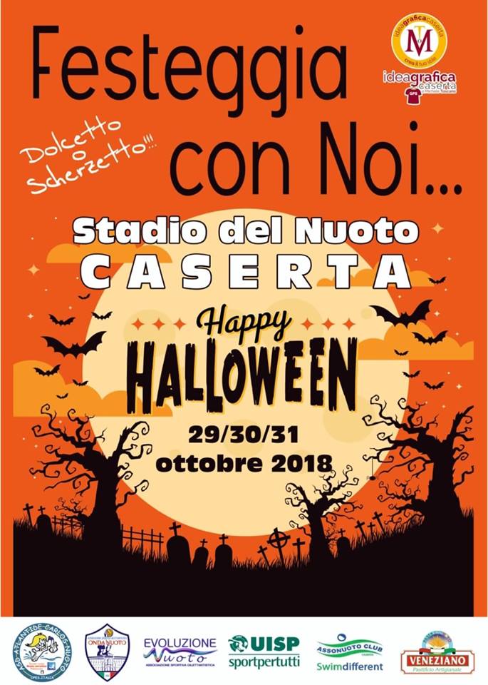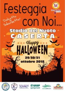 CASERTA – allo Stadio del nuoto di Caserta, un Halloween ‘prolungato’ con una tre giorni all’insegna dei festeggiamenti, con divertimento soprattutto per i più piccini, con il classico dolcetto o scherzetto, maschere anche per i membri dello staff gli organizzatori di questa festa importata dall’America ma di matrice celtica che ha preso piede anche da noi in Italia.