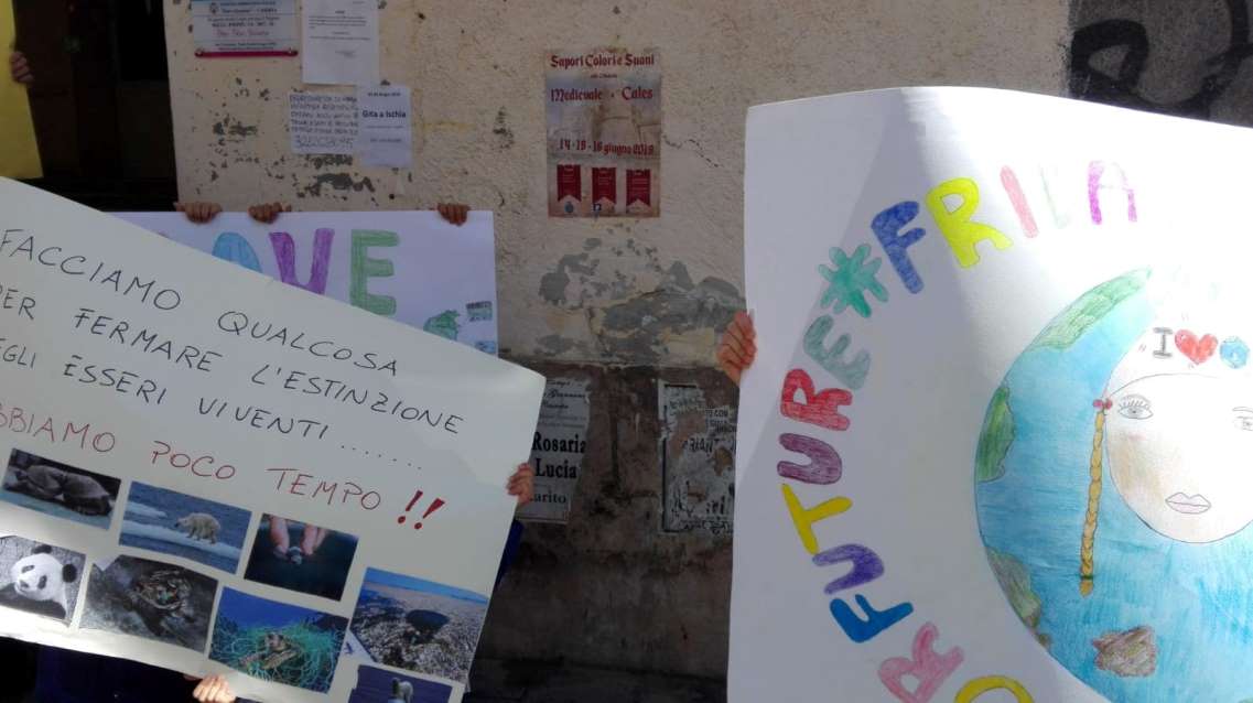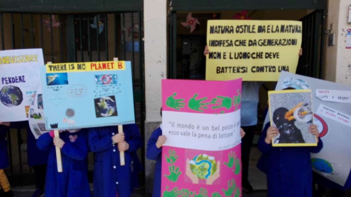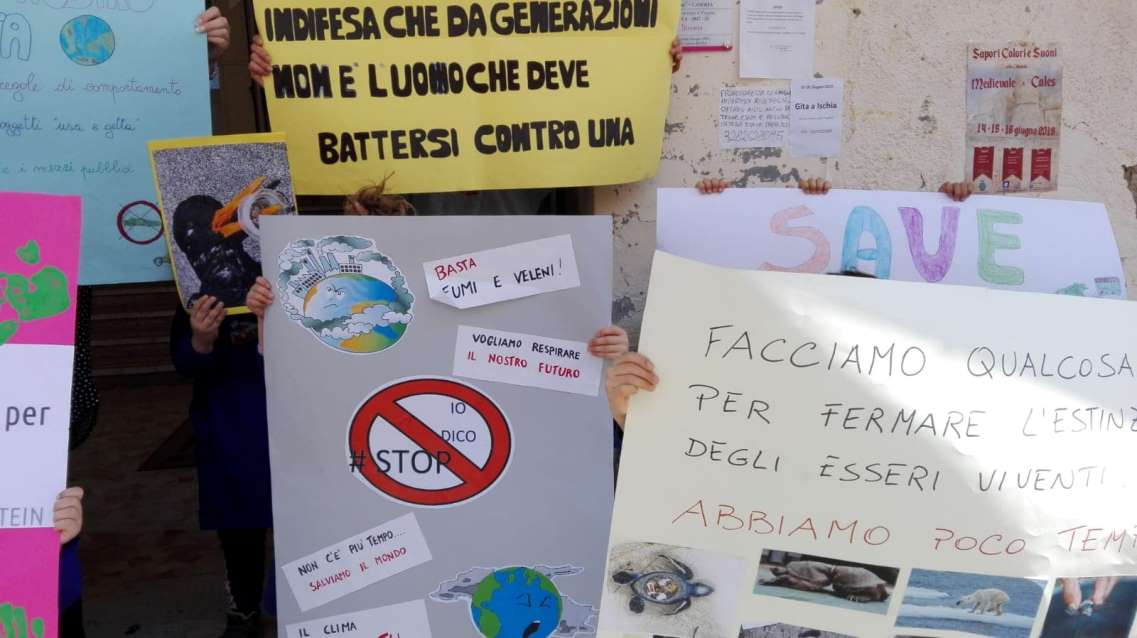 Stamani le classi prime e quarte sono uscite dalla scuola armate solo di cartelli per sollevare l’attenzione sul cambiamento climatico e si sono posizionate sul marciapiede alle ore 10:15 e sono rientrate in classe alle ore 10:30. All’iniziativa hanno preso parte anche le insegnanti: Maria Teresa GAROFANO, Ida RADICE, Clara de ANGELIS, Pina ROMANO e Marisa DI FILIPPO.
