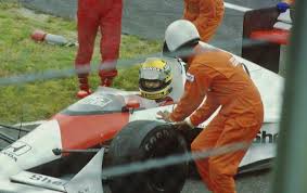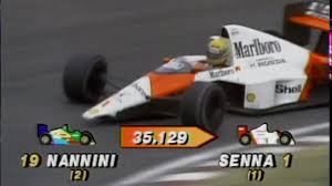 Ayrton in 5 giri riuscì a fermarsi ai box a cambiare il musetto danneggiato, a recuperare 5 secondi di svantaggio su Nannini, che era passato in testa, e andò a vincere.