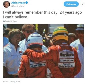 Quello che però è importante e che i due nonostante una epica rivalità per raggiungere quel livello di competizione con Prost che scegliette proprio il giovane Ayrton dopo essere stato quasi battuto sotto il diluvio a Monaco nel 1984, intravedendone il talento cristallino….Senna arricchì alla sua voglia di vincere la voglia di batterlo…entrambi però per arrivare così a un livello elevato, in avevano bisogno l’uno dell’altro, nonostante la rivalità i caratteri opposti ecc ecc sul quale si e’ detto e scritto forse anche troppo dopo gli screzi fecero pace molto tempo dopo, Senna in un messaggio radio poco qualche prima della sua morte disse Alain mi manchi.