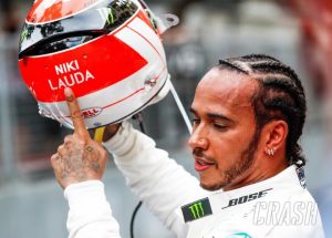 LEWIS HAMILTON OMAGGIA NIKI LAUDA A MONACO DOPO LA VITTORIA, POCHI GIORNI DOPO LA SUA SCOMPARSA SUO PROFONDO ESTIMATORE CON UN CASCO PERSONALIZZATO SIMILE A QUELLO CHE INDOSSAVA L’AUSTRIACO IN UNA F1  DIVERSA, DI UN’ALTRA EPOCA NON DOMINATA DALL’ELETTRONICA ATTUALE