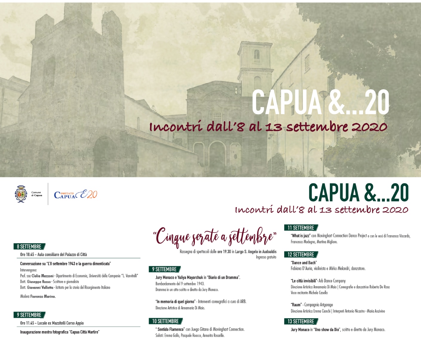 “Cinque serate a settembre” – Incontri dall’8 al 13 settembre 2020