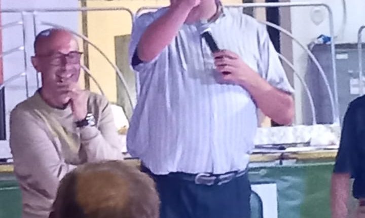In circa un’ora, ha parlato del suo arrivo a Nemoli, alternando episodi autobiografici, battute e barzellette.