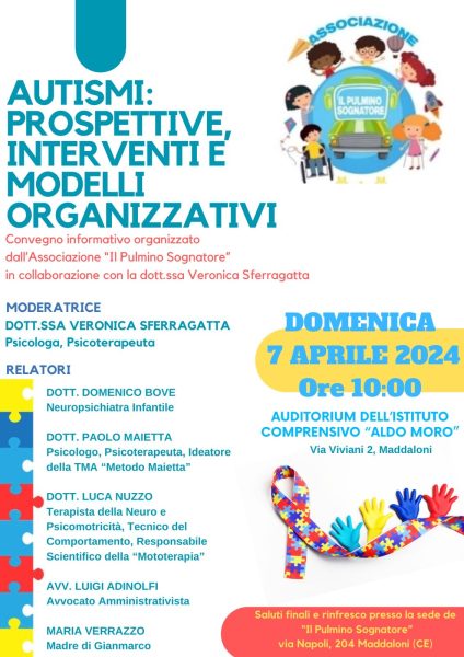 Il 7 aprile ci sarà il nostro primo convegno sull’autismo organizzato in collaborazione con la dottoressa Veronica Sferragatta psicologa e psicoterapeuta e interverranno il neuropsichiatra dott. Domenico Bove
