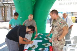 , illustreranno le opportunità professionali e gli sviluppi di carriera. Gli Info Team, riconoscibili dall’abbigliamento con marchio “Esercito”, saranno disponibili a fornire tutte le informazioni necessarie su come accedere al “mestiere del soldato”, raccontando le esperienze e la crescita professionale del personale appartenente alla Forza Armata, sia esso Ufficiale, Sottufficiale o Graduato. L’attività promozionale è finalizzata a promuovere il “Nuovo Esercito” con le sue attrezzature e mezzi tecnologicamente avanzati nonché i Volontari in ferma Prefissata, pedine fondamentali del Nuovo Modello di Difesa nazionale. Dopo i successi mietuti nelle precedenti edizioni estive, con gli ormai famosissimi “Rap Camp”, quest’anno s’intende promuovere una nuova formula denominata “Tour Promozione Estivo” diretto ai giovani e che vede come teatro le belle spiagge italiane. Al “Tour Promozione Estivo” prenderanno parte i Volontari in Ferma Prefissata ad un anno che cercheranno, con la loro diretta testimonianza, di suscitare sui diversi arenili l’interesse dei giovani illustrando loro quali sono i requisiti essenziali per partecipare a questo nuovo sbocco professionale. Non si sottrae a questi compiti neppure il 235° Reggimento Addestramento Volontari (RAV) “ASCOLI” che, in data 27 giugno 2018 e 19 luglio 2018, dalle ore 09.30 alle ore 18.30, sarà interessato allo svolgimento dell’attività in oggetto, sul lungomare di San Benedetto del Tronto all’altezza dello Stabilimento Balneare Militare (concessione n. 20). Con l’occasione saranno presentate ai giovani, di ambo i sessi, le nuove figure dell’Esercito professionale. La legge 23 agosto 2004 nr. 226 infatti, nel sancire la sospensione della leva, ha introdotto le nuove figure professionali del militare a ferma prefissata ad un anno (VFP1) e del militare in ferma prefissata quadriennale (VFP4). Il tour è organizzato capillarmente in ogni regione italiana secondo calendari prestabiliti che riguardano la sessione invernale e quella estiva; solitamente si svolgono in centri molto frequentati, località turistiche, ipermercati, piazze ed è sempre grande l’afflusso di pubblico sia di giovani che vorrebbero intraprendere questa professione che di meno giovani che hanno svolto il servizio di leva in passato oppure si fermano soltanto per formulare gli auguri ed esprimere il proprio apprezzamento per l’opera svolta dai soldati italiani impegnati tra l’altro in importanti missioni in Italia ed all’estero.