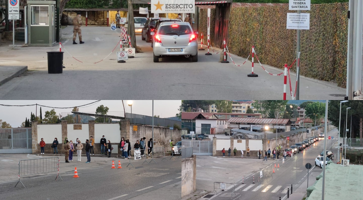 Fuori la caserma in questo momento ci sono ,tutti in fila e in maniera ordinata, utenti in auto e a piedi ,coordinati dalla Polizia Municipale e gli stessi militari. Ricordiamo a chi legge che quello di oggi è il terzo Open Day Astrazeneca – il primo della durata di 24 ore – organizzato dall’Asl nel Casertano nelle ultime due settimane: i primi due si sono tenuti all’hub dell’ospedale di Marcianise, e in particolare se il primo fece registrare un risultato al di sotto delle attese, quello del 3 maggio scorso fu un successo, con quasi 2500 vaccini somministrati soprattutto a ragazzi di età compresa tra i 18 e i 30 anni