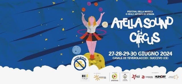 Per il settimo anno continua la fusione della magia delle arti circensi con quella della musica dal vivo. Un evento dedicato alla spensieratezza dei più piccoli e delle famiglie. Spettacoli unici con 17 artisti nazionali e internazionali, attività didattiche, formative e di intrattenimento con la possibilità di mangiare cibo tradizionale e sano.Dal 27 al 30 giugno l’Associazione Artenova proporrà un vortice di musica, arte e divertimento in occasione della settima edizione dell’Atella Sound Circus, il Festival di musica e arti di strada che ha conquistato il cuore di migliaia di appassionati. Un evento imperdibile che trasformerà il Casale di Teverolaccio di Succivo in un mondo incantato.