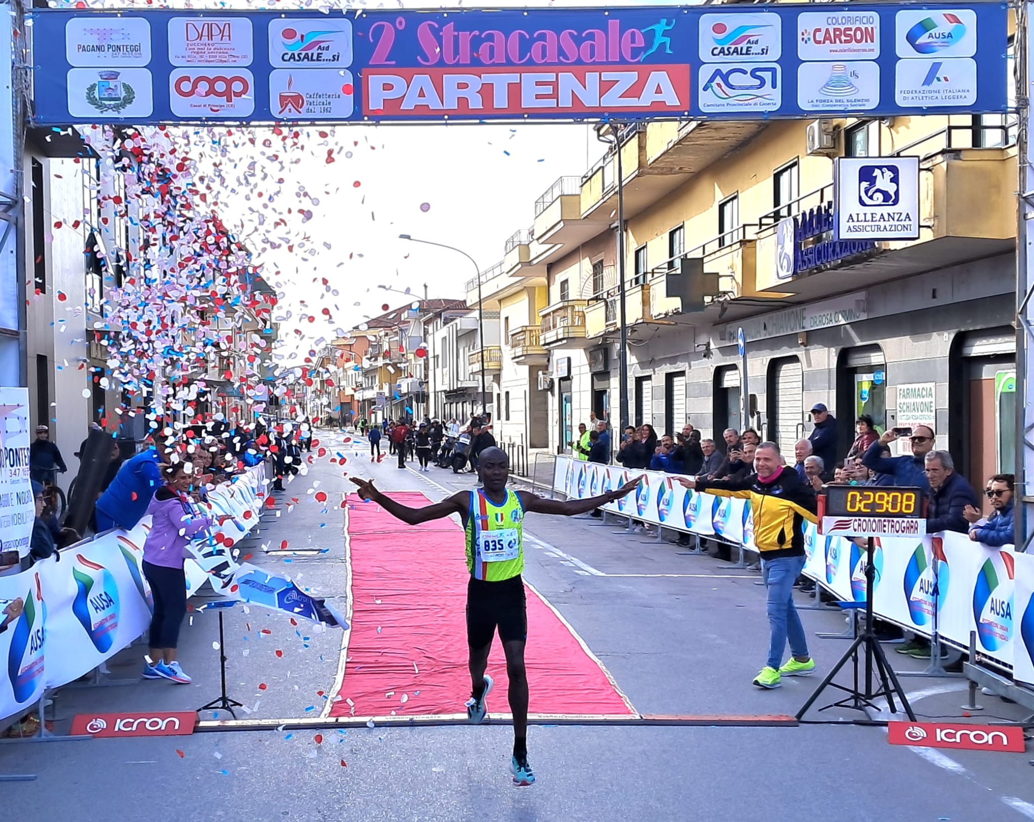 Casal di Principe. Con il motto “Corriamo in Amicizia” la manifestazione organizzata dalla società di atletica leggera Casale…Si con la corsa su strada di dieci chilometri che prende il nome della Città con il valore superlativo “Stra…Casale” di Casal di Principe ha riconfermato il successo della passata edizione. Il parco Don Peppe Diana “simbolo della legalità” è stato il luogo della partenza e dell’arrivo, la dedizione è stata la chiave di un evento di successo sono le numerose testimonianze ascoltate. Il numero di circa 1000 podisti attirati da diverse località hanno rappresentato in gara 72 società, ha primeggiare nella classifica speciale riservata ai Team la Podistica Frattese del presidente Antonio Alborino. Anche questa volta l’appuntamento ha fatto registrare una numerosissima partecipazione di atlete donne e della Categoria Assoluti. La manifestazione si è svolta con l’egida della Fidal con il supporto del Gruppo Giudici Fidal di Caserta, tempi e ordine di arrivo a cura di CronometroGare. La Gara: successi keniani con Dickson Simba Nyakundi e Teresiah Kwamboka Omosa i portacolori del Team Caivano Runners (vincitore per il 2023 del tricolore C.d.S. femminile) del presidente Lugi Celiento vincono e fissano il nuovo record del tracciato tutto cittadino con i tempi finali di 29’08” 34’09”. Il vincitore in assoluto precede i marocchini Abdellah Latam (vincitore del traguardo volante e Aziz Lakriti con i rispettivi tempi di 29’55” e 31’24” in quarta posizione l’atleta campano Gilio Iannone, 32’45” il suo tempo. La vittoria di Omosa può essere descritta corsa solitaria dopo il primo chilometro dalla partenza, l’atleta classe 95 si è lasciate alle spalle Francesca Maniaci, tempo 36’44” e Filomena Palomba tempo netto di 38’00”. Unico neo della mattinata la pioggia del protagonista Giove Pluvio dopo l’ultimo arrivato ha voluto primeggiare rovinando in parate il momento della premiazione. Antonio Corvino patron dell’evento nel suo intervento ha dato sfogo alle ansie accumulate ringraziando i presenti e coloro che hanno partecipato a costruire l’affermazione della StraCasale in successo in particolare l’Amministrazione Comunale e le forze dell’ordine; il discorso è terminato dicendo: “Sono fiero ed orgoglioso della pagina sportiva che si è fatta questa mattina a Casal di Principe, certo bisogna ancora migliore alcuni punti del programma, ma resto ugualmente estremamente felice ringrazio tutti”