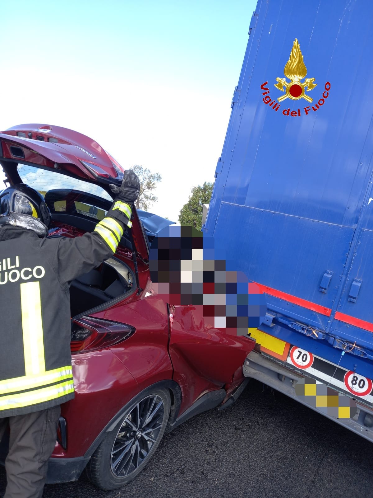Nel primo pomeriggio di oggi verso le ore 13:00 una squadra dei Vigili del Fuoco del Comando provinciale di Caserta , proveniente dal distaccamento di Marcianise, è intervenuta presso lo svincolo di immissione dell’autostrada A30 verso il casello Napoli Nord sull’autostrada A1, allertati dalla polizia stradale per un incidente stradale avvenuto tra un’autovettura che, per cause in corso di accertamento, ha tamponato violentemente un autotreno che la precedeva. Arrivati immediatamente sul posto i Vigili del Fuoco hanno soccorso due persone, un uomo ed una donna, rimasti incastrati tra le lamiere dell’auto, liberandoli ed assicurandoli alle cure del 118 presente sul posto per il successivo trasporto in ospedale. In supporto nelle operazioni di soccorso sono intervenute anche un’autogrú dalla sede centrale del Comando ed una squadra del Comando di Napoli proveniente dal distaccamento di Afragola.Successivamente i Vigili del Fuoco hanno messo in sicurezza i veicoli per le successive operazioni di rimozione.