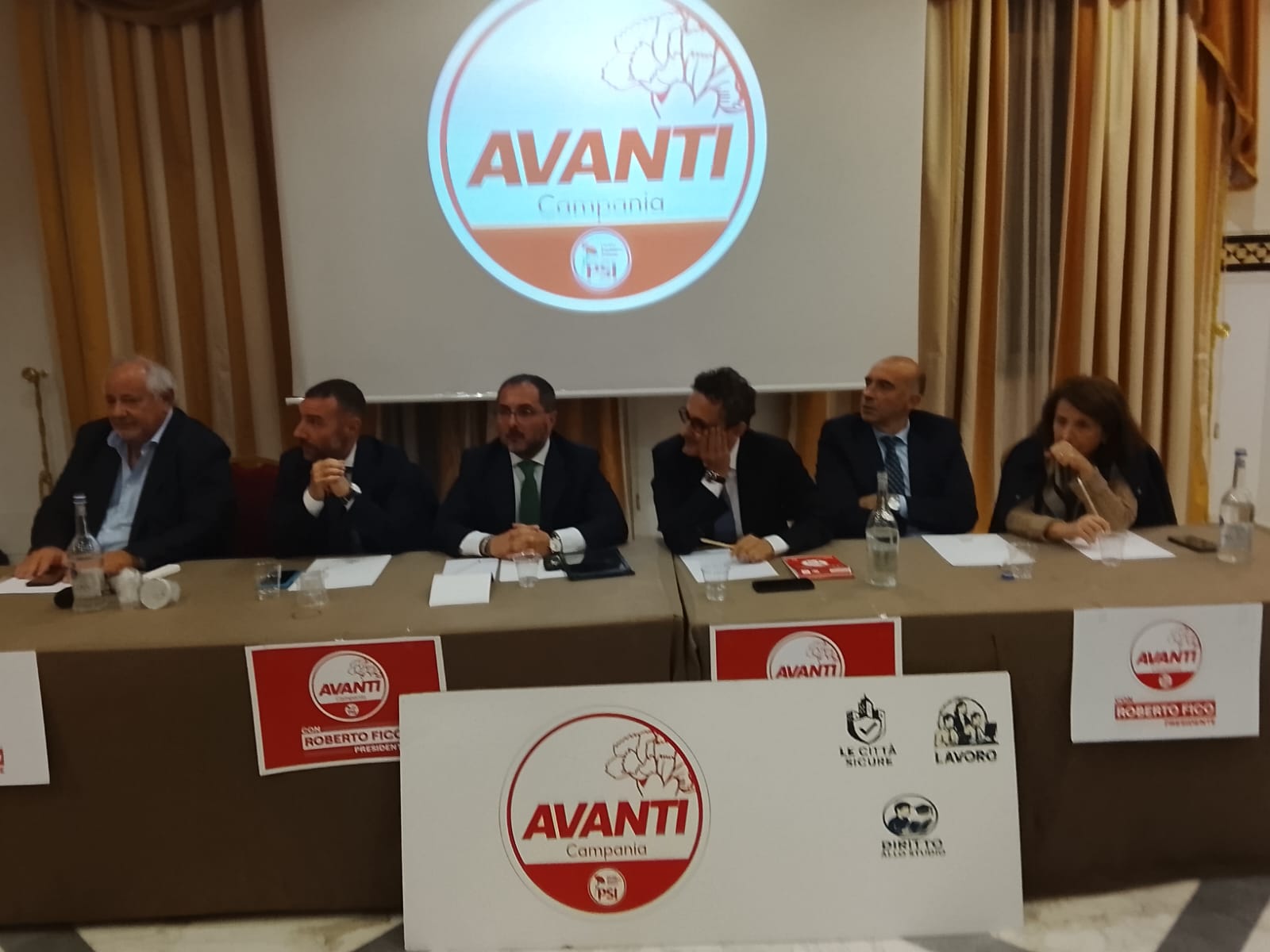 In una sala gremita, in ogni ordine e posto, il Segretario Nazionale, Enzo Maraio, il Segretario Regionale Michele Tarantino, il Coordinatore Provinciale di Caserta, Romolo Vignola, il Responsabile della Lista, Giovanni Cusano ed i due Membri del Direttivo Nazionale, Espedito Ziello e Maria Luisa Chirico, hanno presentato gli 8 candidati al Consiglio Regionale della Campania.