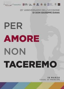 Si proseguirà con la presentazione di alcune eccellenze del territorio per poi concludere alle ore 20,00, in piazza Mercato, con la Festa della Tammorra e la straordinaria partecipazione di Ambrogio Sparagna e i Vico- Piccola Orchestra. La giornata del 19 marzo è promossa dalla Diocesi di Aversa, comune di Casal di Principe, Comitato don Peppe Diana, Libera, Scuola di Pace don Diana, il comitato organizzatore del 25esimo ‘Per Amore non Tacerò’, Agesci, Foulards Blancs, Coordinamento campano dei familiari delle vittime innocenti. Con il sostegno di Camera di Commercio di Caserta e Fondazione Polis.