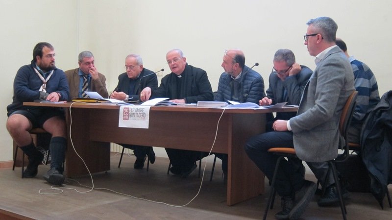 , da lui redatta proprio per il 25esimo dell’uccisione di Don Diana, intitolata “Per amore, Sentinelle e Profeti”. Ad aprire e a moderare la conferenza è stato don Francesco Riccio, direttore dell’Ufficio Comunicazioni Sociali; sono poi intervenuti alcuni rappresentanti delle altre realtà istituzionali e associative che siedono al tavolo diocesano: Renato Natale, sindaco del Comune di Casal di Principe; Valerio Taglione per il Comitato Don Peppe Diana e Scuola di pace; Gianni Solino per l’associazione Libera; Giovanni Del Villano per l’Azione Cattolica Italiana, Eupolis e Consulta Diocesana delle Aggregazioni Laicali; Pasquale Leone per l’AGESCI; Marino Pezzullo per i Foulards Bianchi