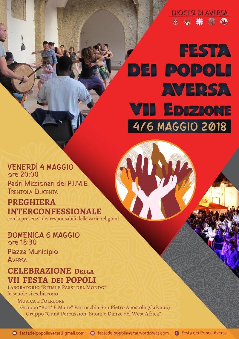 AVERSA – Integrazione, Accoglienza, Convivenza tra religioni e culture. Parole entrate oramai nel vocabolario quotidiano, ma anche punti fermi della “Festa dei Popoli”, diventata uno dei momenti centrali dell’anno pastorale della diocesi di Aversa. Giunto alla VII edizione, l’appuntamento che vede la stretta e collaudata sinergia tra diversi uffici diocesani (Ecumenismo e Dialogo, Migrantes, Caritas, Comunicazioni Sociali, Missionario, Scuola, Pastorale Giovanile) si svolgerà nelle due giornate di venerdì 4 e domenica 6 maggio 2018. “Conoscere le ragioni delle migrazioni dei popoli, riconoscere e interagire con l’altro, educare alla convivenza culturale e promuovere il dialogo interreligioso sono alcune delle finalità che, sin dal principio, ispirano il nostro percorso”, afferma don Giuseppe Esposito. Il responsabile dell’Ufficio Ecumenismo e Dialogo ricorda il tema al centro di questa settima edizione, “RaccontiamoCi”: “Partiamo dal Vangelo, che ci invita a guardare l’altro come il fratello che cammina con noi in questo mondo: la parola di Gesù ci autorizza a dire ‘sì’ in maniera concreta alla solidarietà e condivisione”. Il programma della VII Festa dei Popoli si svilupperà dunque in due giornate. Venerdì 4 Maggio alle ore 20:00, presso il PIME di Trentola Ducenta, verrà celebrata la Preghiera Interconfessionale con la presenza dei responsabili delle varie confessioni cristiane e religioni presenti sul nostro territorio diocesano. Domenica 6 Maggio 2018 ad Aversa (Piazza Municipio), a partire dalle 18:30, sarà allestito il “Villaggio della Solidarietà” con esposizioni artistiche e artigianali, musiche, danze e gastronomie delle varie tradizioni. Le scuole del territorio presenteranno i progetti ideati e realizzati nell’ambito del Laboratorio “Ritmi e passi dal mondo”. A seguire si esibiranno i gruppi musicali “Gunà Percussion”, composto da elementi africani e italiani, e “Botte E Mane” della Parrocchia San Pietro Apostolo in Caivano.
