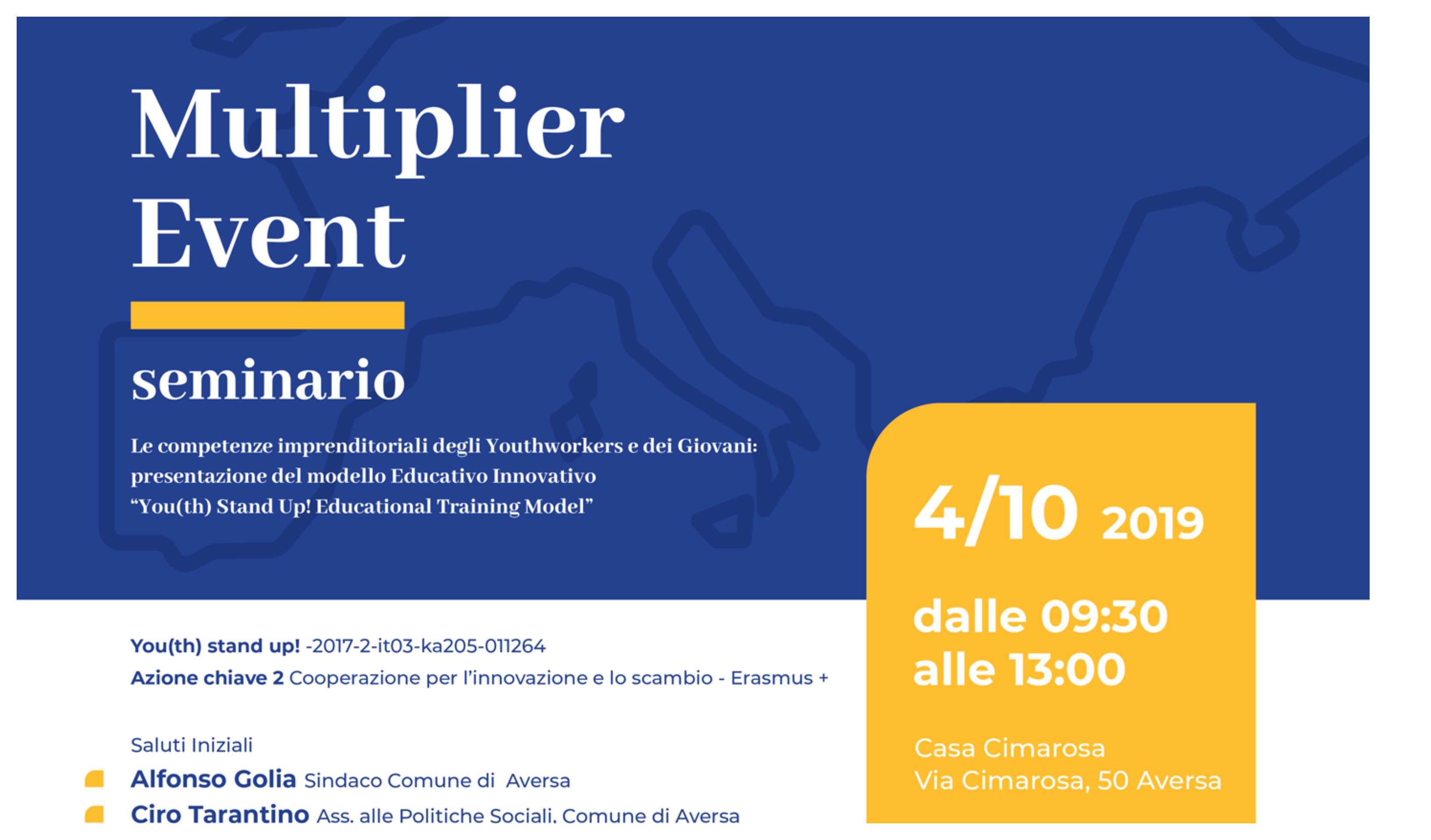 • a Casa Cimarosa, Via Cimarosa – dalle 9.00 alle 13.00 – Il Seminario “Le competenze imprenditoriali dei Giovani e presentazione Modello Educativo “You(th) Stand Up”.