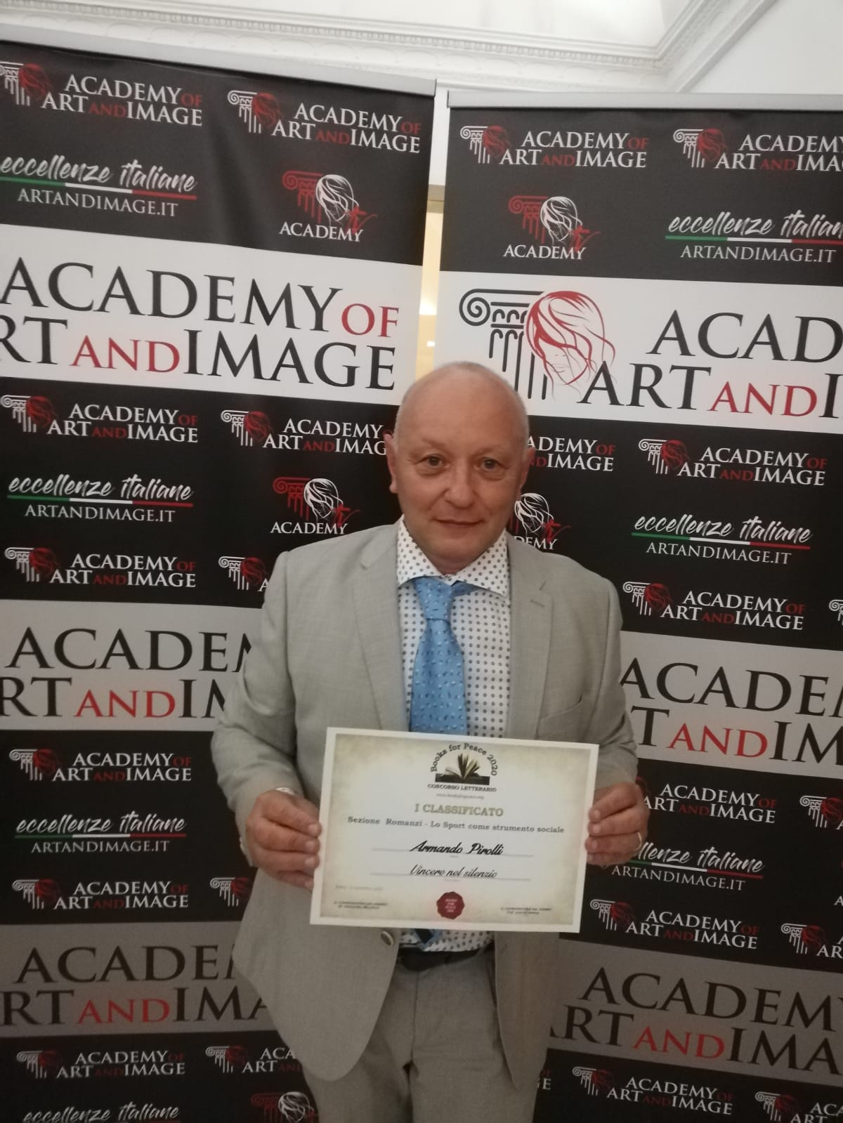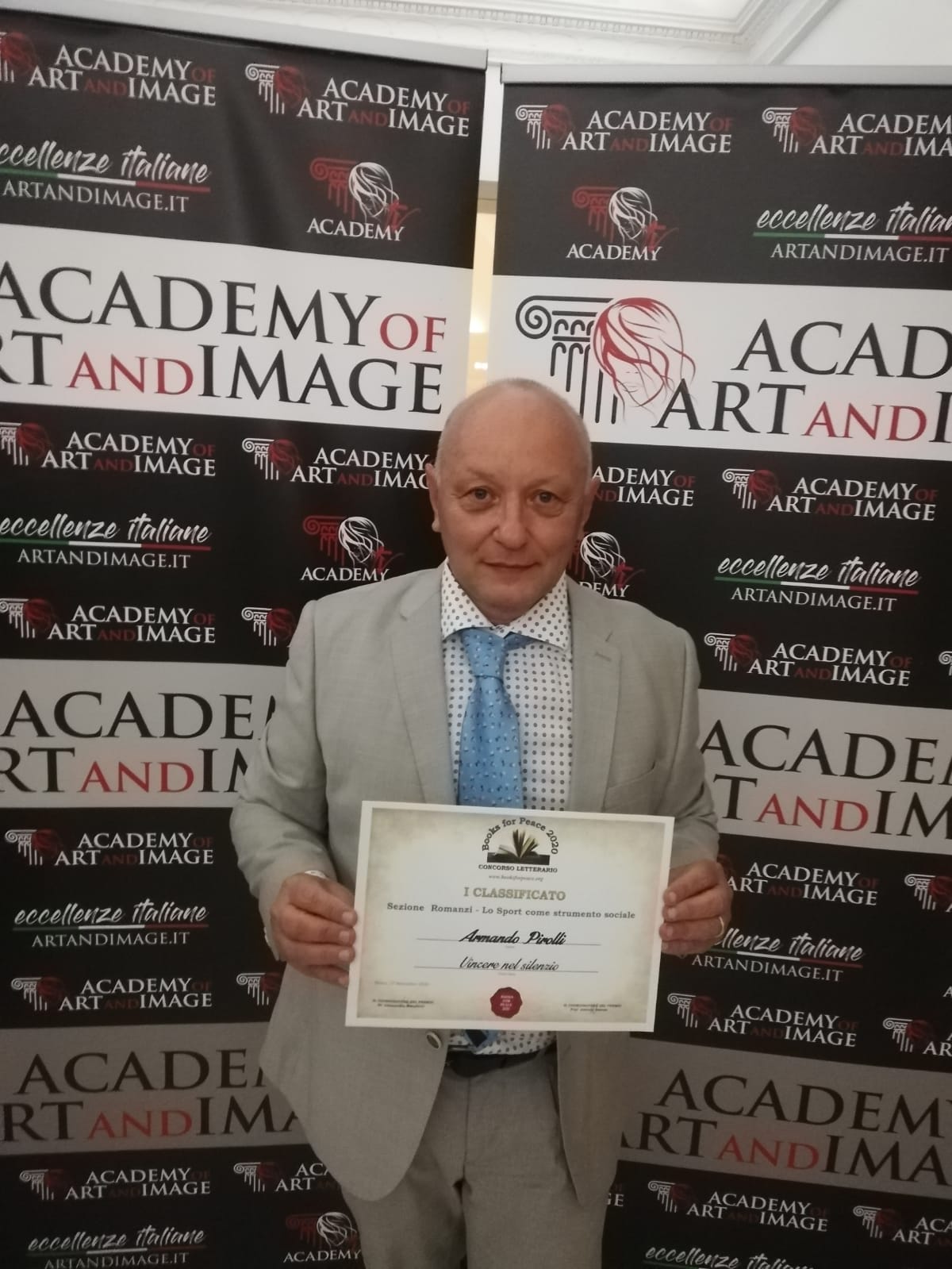 La quarta edizione del Books for Peace 2020 ha avuto come tema portante l’arte e la cultura patologica, l’integrazione e la valorizzazione culturale di tutti coloro che vivono una disabilità o una malattia psichica o fisica. Armando Pirolli ha vinto quest’edizione 2020 con il romanzo biografia “Vincere nel Silenzio” la vita e la storia sportiva di un ragazzo sordomuto di Teverola in provincia di Caserta, edito e curato da Pasquale Gnasso Editore. Madrina della manifestazione Katia Noventa che con tante altre personalità di spicco hanno coadiuvato nelle nomination di questa edizione . Hanno partecipato tra gli altri : Giovanni Improta (campione sordomuto di Kich Box), Franco Di Mare ( RAI ), Amedeo Ricucci ( RAI ), Elena Sofia Ricci ( Attrice ), Sebastiano Somma ( Attore ), Damiano Tommasi ( Presidente AIC ).